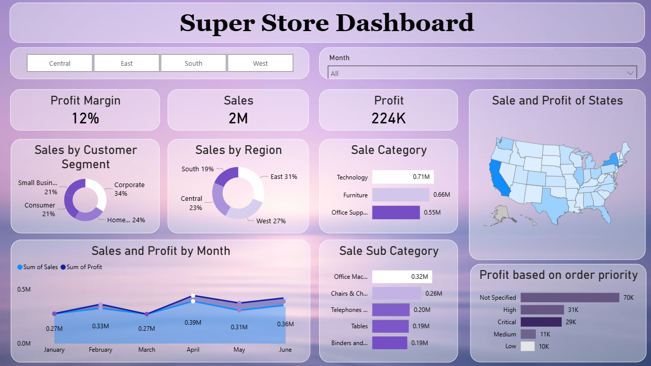 The Retail Sales Power BI Dashboard Template helps track sales performance, profitability, and customer behavior across regions and time periods. This Retail Sales Power BI Dashboard Template includes key metrics such as total sales, total profit, and profit margin to evaluate overall business performance. It also highlights performance by region, customer segment, product category, and sub-category for deeper insights. Designed for retail managers, business analysts, and decision-makers, this Retail Sales Power BI Dashboard Template helps identify high-performing regions, optimize product mix, and improve sales strategies. It solves challenges related to tracking sales trends and understanding customer purchasing behavior. The dashboard includes visuals such as monthly sales and profit trend charts, state-wise sales distribution maps, profit by order priority charts, and KPI cards for quick insights. Interactive filters allow users to explore data by region, segment, category, and time period for detailed analysis. Download this Retail Sales Power BI Dashboard Template and start analysing sales performance and profitability trends today.