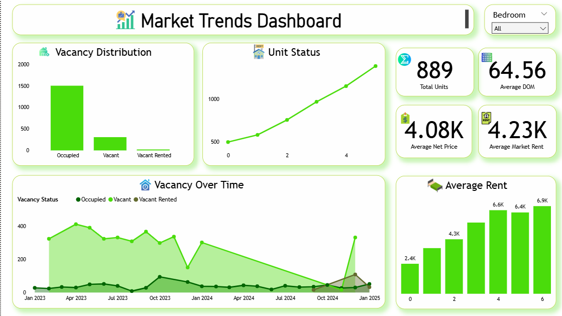 The Market Trends is a market trends green Power BI theme engineered for real estate, investment, and executive performance dashboards where growth momentum, market movement clarity, and a modern data-focused visual environment need to communicate positive commercial direction and analytical precision across every report element. This Power BI theme builds its palette around vibrant fresh greens and crisp growth accent tones set against a clean light-grey canvas — a combination that instinctively signals expansion, positive momentum, and market vitality while maintaining the professional composure and structured readability that executive-level real estate and market performance reporting demands. The contrast between the clean light-grey background and the vivid green accent palette creates a report environment of exceptional clarity — allowing real estate analysts, investment directors, and market strategy teams to navigate rental trend data, vacancy analysis metrics, and property performance KPIs with effortless visual flow and immediate data comprehension. Carefully calibrated green accent tones provide precise hierarchy across KPI cards, trend line visuals, and market comparison charts while reinforcing the growth-oriented, forward-momentum character that defines the overall design identity. It is particularly well-suited to real estate investment trusts, property management organisations, commercial lettings agencies, market research firms, and executive strategy teams building dashboards for rental market trend analysis, vacancy rate monitoring, property portfolio performance, market share reporting, and real estate investment return measurement. Investment directors, market analysts, and real estate executives who need reports that communicate growth trajectory and market momentum with modern visual confidence will find this palette a precise and immediately compelling fit. The theme is delivered as a JSON file fully compatible with all versions of Power BI Desktop and straightforward to deploy across your complete report suite in seconds. Download this market trends green Power BI theme, import the JSON file into Power BI Desktop, and give your real estate and market performance dashboards the clean, growth-driven visual identity that modern market trend analytics and executive reporting excellence demands.
