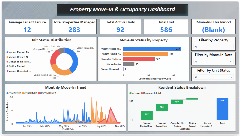 The Property Move is a property occupancy Power BI theme engineered for occupancy performance monitoring, move-in analytics, and residential property management dashboards where a modern, structured visual environment built around strong blue KPI clarity, multi-status accent differentiation, and clean white visual container architecture needs to present unit status distributions, move-in trend data, and resident breakdown analytics with the professional precision and executive-focused readability that serious property occupancy reporting and operational management demands. This Power BI theme establishes a neutral grey background foundation with clean white visual containers — creating clear visual separation and a composed, high-readability report structure — anchored by strong blue accent tones for primary KPI callout numbers and headline occupancy metrics that reinforce executive focus and analytical authority across every dashboard layer. The purposefully structured multi-status colour system — deploying orange, red, green, and purple accent tones to distinguish unit status categories, move-in trend comparisons, and resident demographic breakdowns — creates an intuitively operational report environment where property managers, occupancy analysts, and residential operations leads can interpret unit availability data, move-in activity patterns, and resident category distributions with immediate visual clarity and zero analytical ambiguity. Darker title shading maintains precise typographic hierarchy across report sections, while soft grey slicer styling delivers a clean, unobtrusive filtering experience that preserves the professional, data-driven character of the overall dashboard design. It is particularly well-suited to residential property management organisations, build-to-rent operators, student accommodation providers, social housing analytics teams, and property operations reporting departments building dashboards for occupancy rate tracking, move-in trend analysis, unit status monitoring, resident demographic breakdown, and property activity KPI scorecard measurement. Property managers, occupancy analytics leads, and residential operations directors who need reports that combine modern structural clarity with the precise multi-status visual differentiation that serious property move-in and occupancy performance reporting demands will find this palette a precisely calibrated and immediately purposeful fit. The theme is delivered as a JSON file fully compatible with all versions of Power BI Desktop and ready to deploy across your complete property analytics and occupancy reporting suite in seconds. Download this property occupancy Power BI theme, import the JSON file into Power BI Desktop, and give your move-in analytics and occupancy performance dashboards the clean, blue-accented visual identity that structured residential property reporting and operational management demands.