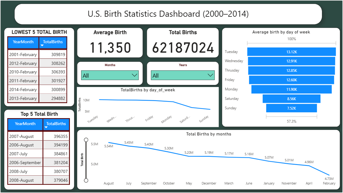 The US Birth is an evergreen government Power BI theme engineered for statistical analysis, demographic reporting, and government data dashboards where a deep, structured visual environment built around evergreen backgrounds, soft neutral card surfaces, and bright blue data accent guidance needs to present birth rate trends, population distribution data, and demographic performance metrics with the institutional authority, analytical clarity, and structured hierarchy that serious government and public sector reporting demands. This Power BI theme builds its palette around a deep evergreen background that establishes a composed, professionally authoritative foundation — balanced by soft neutral card surfaces and muted grey structural tones that actively reduce visual fatigue during extended statistical analysis sessions — while bright blue chart elements provide precise, directional guidance toward key demographic insights, trend inflection points, and statistical performance indicators across every visual layout. The modern UI character of the design — subtle card shadow depth, rounded card edge styling, and structured data accent hierarchy — creates a report environment that feels simultaneously contemporary and institutionally credible, guiding government analysts, demographic researchers, and public sector data leads through birth rate statistical comparisons, regional demographic distributions, population trend analytics, and time-series data breakdowns with effortless visual flow and confident analytical comprehension. The deliberate balance between deep evergreen depth, muted green and grey visual calm, and bright blue analytical direction ensures that complex multi-variable demographic and statistical data remains clearly structured and immediately interpretable across every dashboard layer. It is particularly well-suited to government statistics agencies, public health demographic departments, census and population research organisations, social policy analytics teams, and institutional reporting practices building dashboards for birth rate trend analysis, regional demographic comparison, population growth reporting, statistical distribution visualisation, and government demographic KPI measurement. Government data leads, demographic research directors, and public sector analytics managers who need reports that combine the structured institutional authority of evergreen government aesthetics with the modern UI clarity and analytical precision that serious demographic and statistical reporting demands will find this palette a precisely calibrated and deeply purposeful fit. The theme is delivered as a JSON file fully compatible with all versions of Power BI Desktop and ready to deploy across your complete demographic analytics and government reporting suite in seconds. Download this evergreen government Power BI theme, import the JSON file into Power BI Desktop, and give your demographic and statistical dashboards the deep evergreen visual identity that structured public sector analytics and institutional government reporting demands.